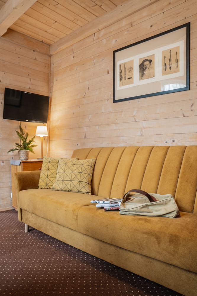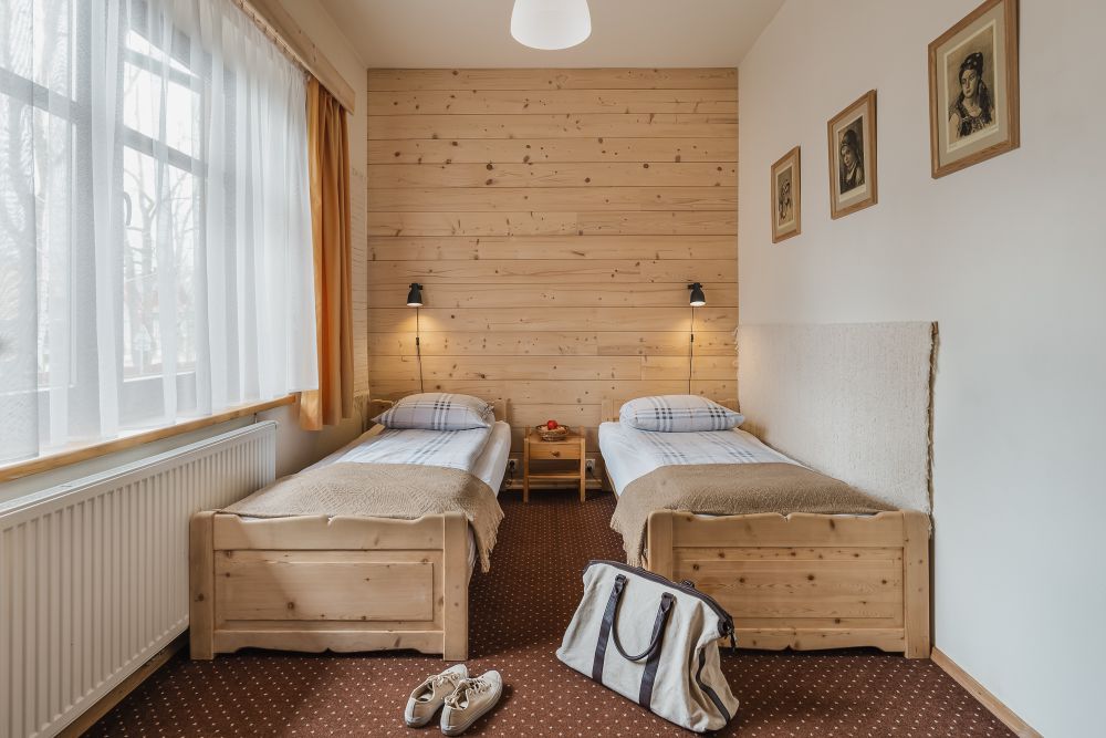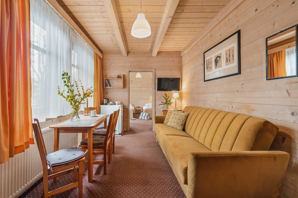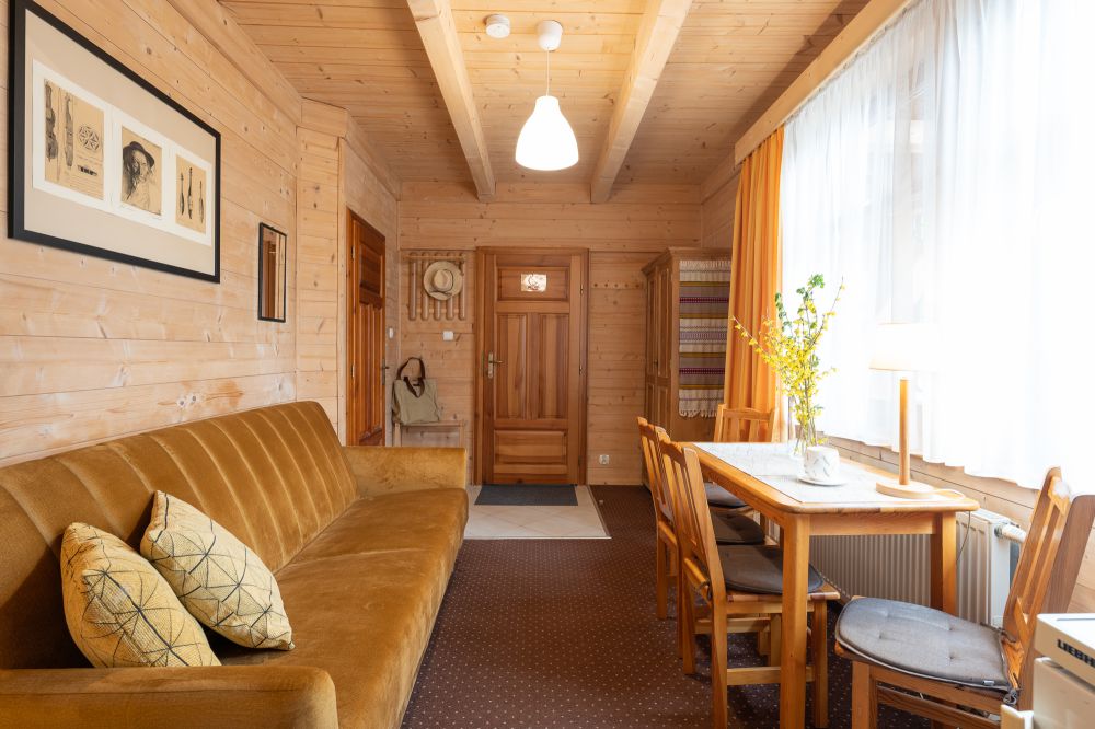 Dwupokojowe studio dla max. 3 osób, kompletnie wyposażone, w stylu regionalnym . Mieści się w Willi Bystry zlokalizowanej w dzielnicy Zakopanego Bystre, w odległości ok. 1800m od górnej części ulicy Krupówki. Architektura budynku swoim charakterem nawiązuje do stylu zakopiańskiego i jednocześnie w nowoczesny sposób łączy elementy drewna, kamienia i stali. W skład pokoju wchodzi: sypialnia z dwoma łóżkami pojedynczymi, z możliwością złączenia, pokój dzienny z rozkładaną kanapą z funkcją spania i łazienka z kabiną prysznicową. Dla gości pokoju zarezerwowane jest jedno, bezpłatne miejsce parkingowe.